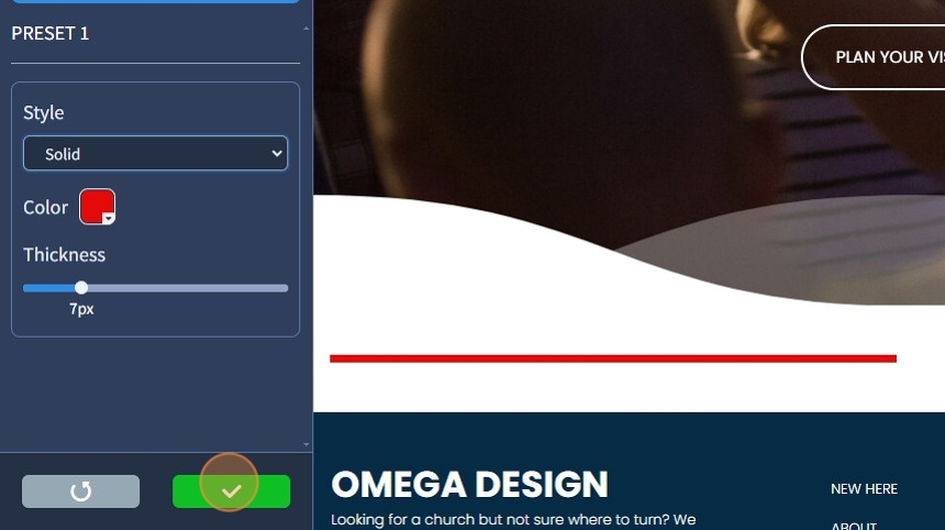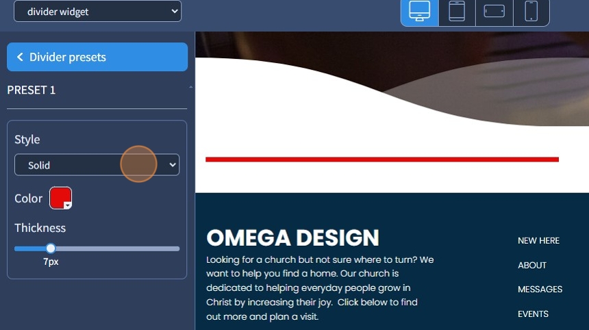 2. Specify the Style (solid, dashed, or dotted), Color, and Thickness for the Divider Widget. If you need a specific color, use the Color Picker