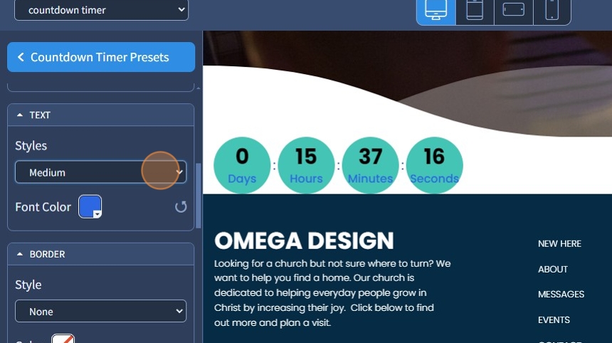 4. Specify the Font Style and the Font Color for the Text in the Countdown Timer widget