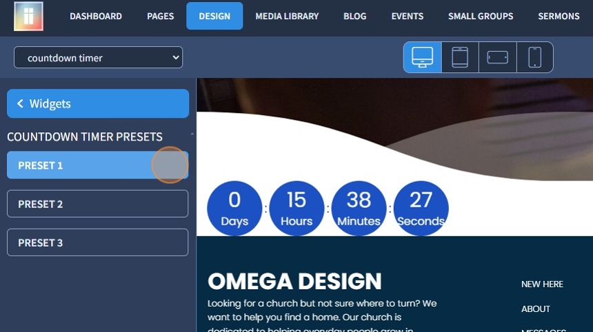 1. The Countdown Timer widget has three presets. Select Preset 1
