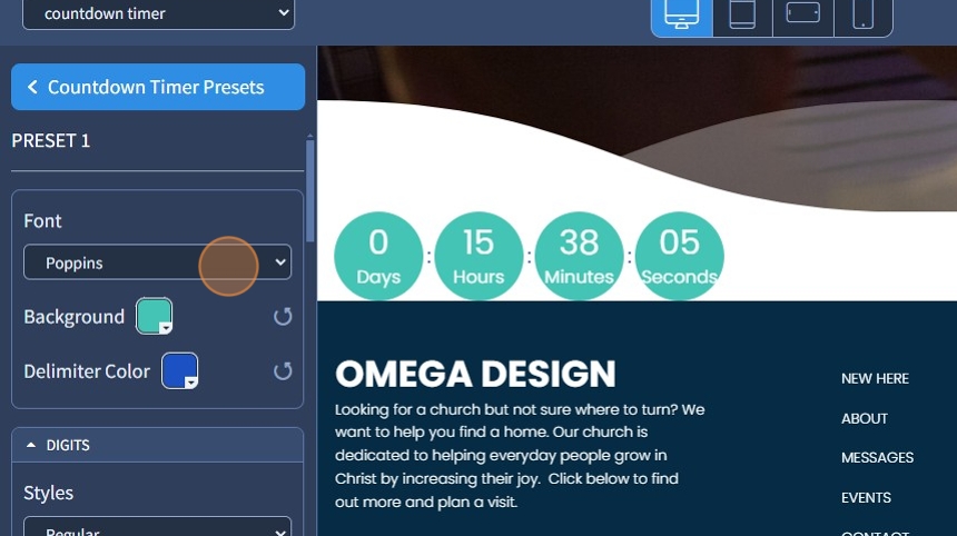 3. Specify Font Style and Font Color for the Digits in the Countdown Timer widget