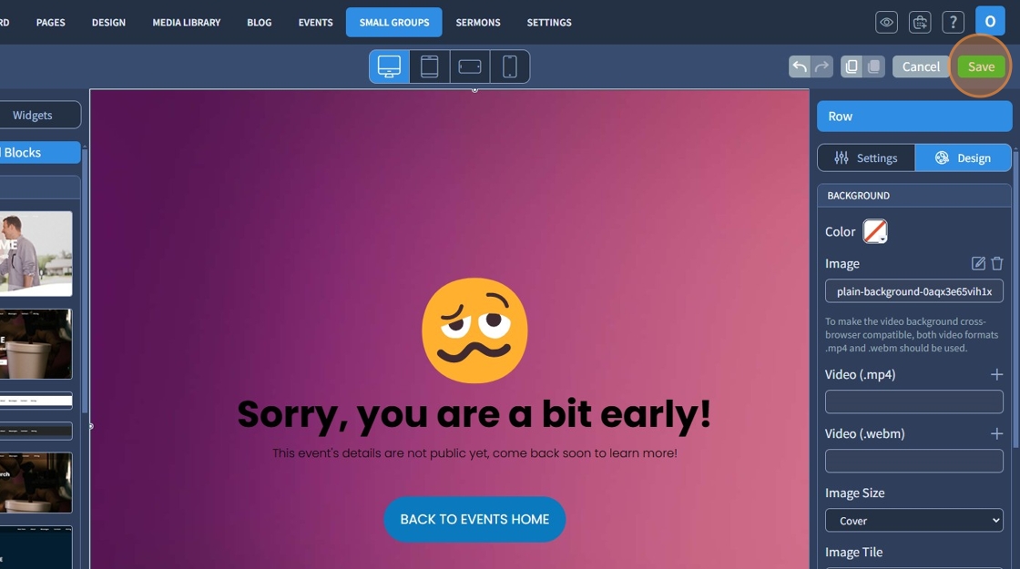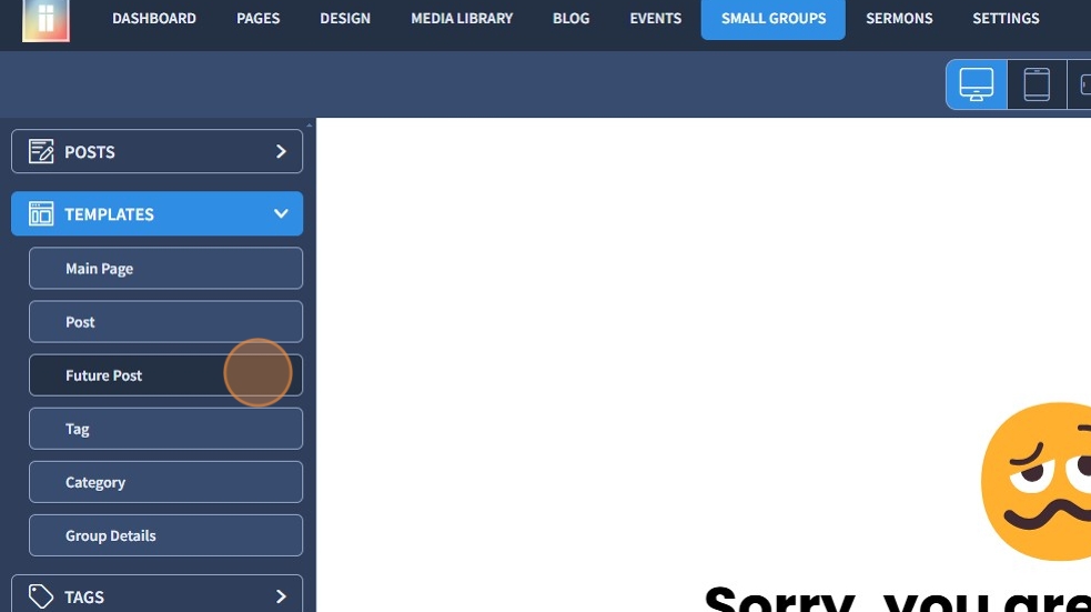 1. The Future Post templates let you customize the Under Construction page for Small Groups posts scheduled for a future date