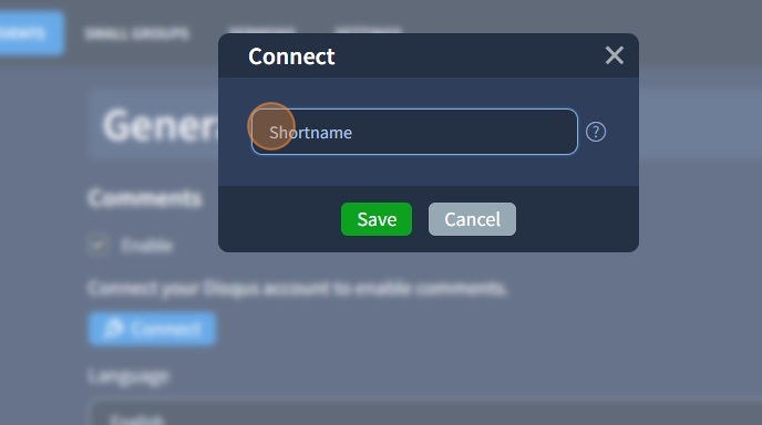 3. Click "Connect" to start working with Disqus. You would need to paste a Disqus shortname. Please check this guide by Disqus on what a shortname is.