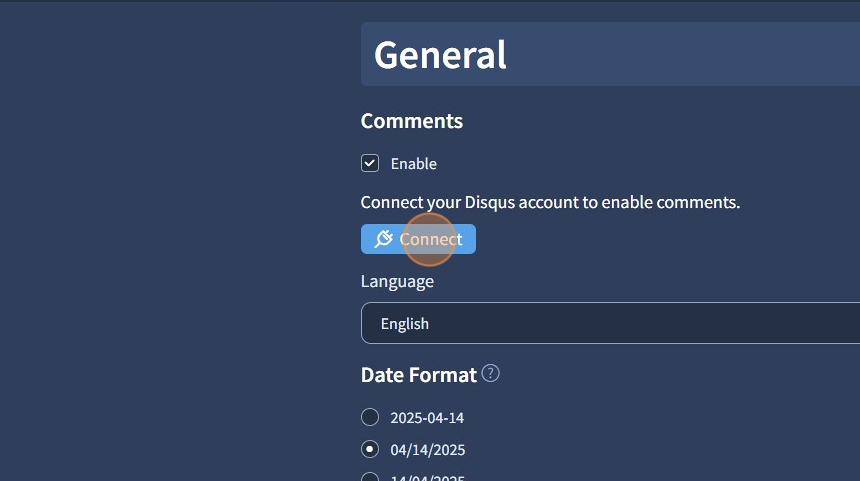 2. Select the "Enable" checkbox to connect the Disqus comments plugin