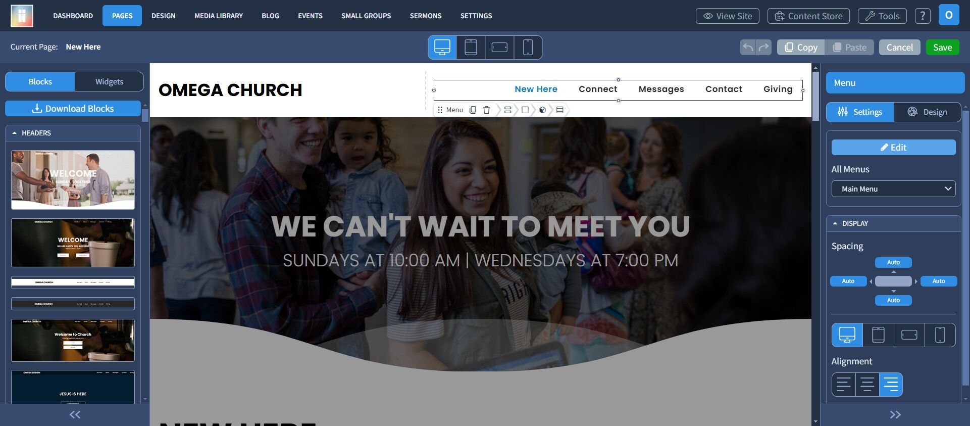 2. If you wish to use the "Menu" widget for Anchor purposes, please follow the steps below: