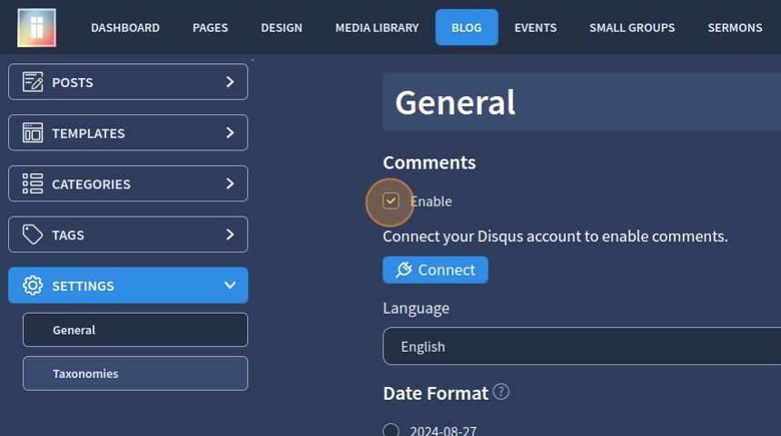 2. For comments to display on the Blog, you should enable the Disqus comments plugin first.